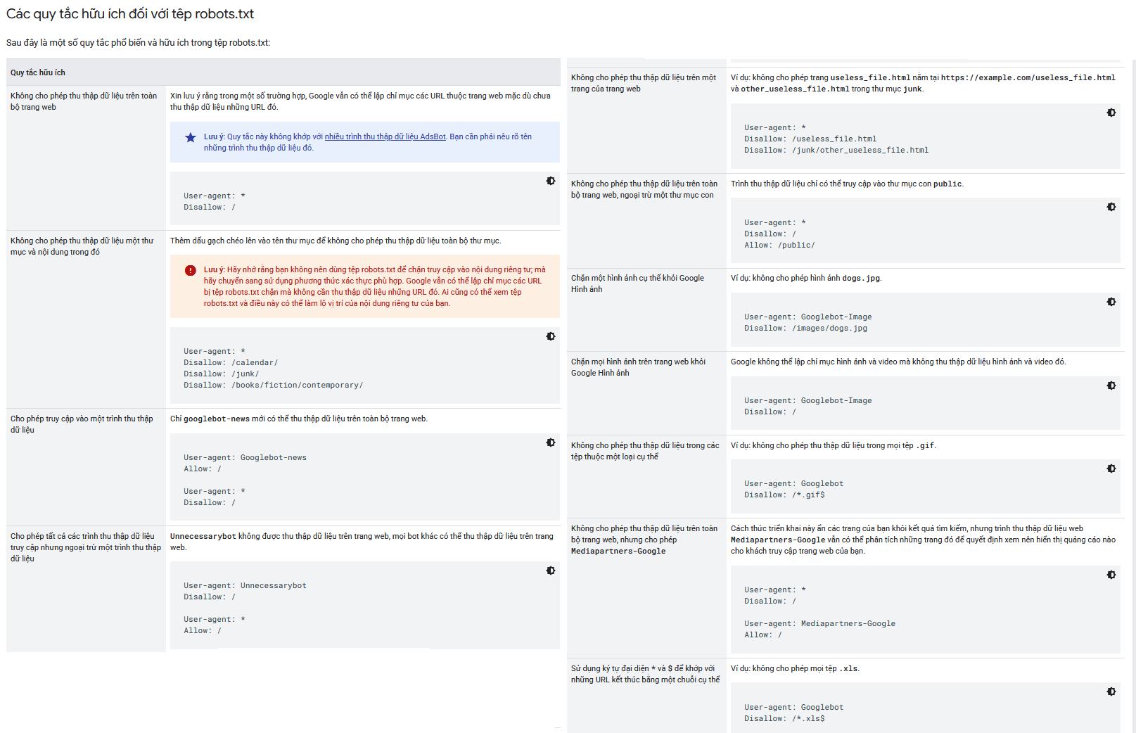 - Disallow ngăn trình thu thập truy cập vào đường dẫn cụ thể.
